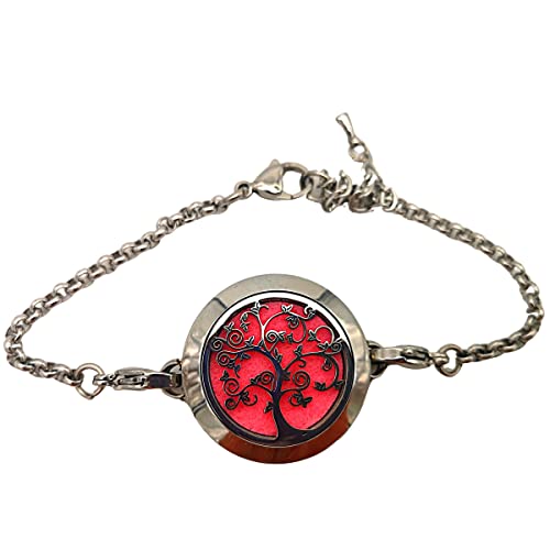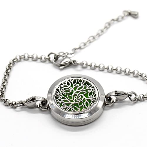 Aromaterapi eterisk olja diffusor armband - parfym diffusor smycken gåva - damgåva rostfritt stål med "livets träd" mönster - innehåller 5 färgglada doftspridare - Zen'Arôme