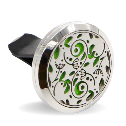 Zen'Arôme bil parfymdiffusor Clip'Arom, bil luftfräschare för parfym och eterisk olja, rostfritt stål, klämma på ventilationsgaller, ängelmönster + 5 återanvändbara blottar