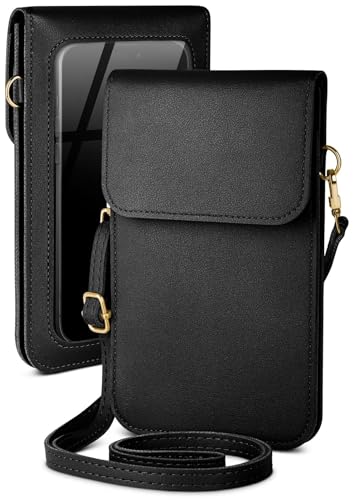 moex mobilväska för upphängning för Asus Zenfone 6 (2019) – liten handväska med mobiltelefonfack och visningsfönster, 2 extra fack – mobiltelefon axelväska dam, onyxsvart