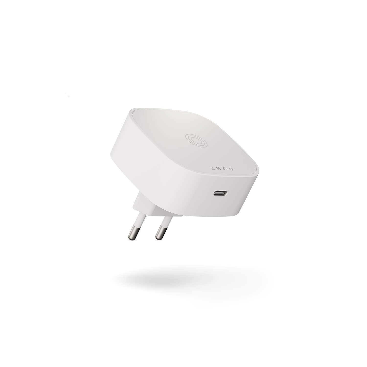 Zens Wireless Charging EU Power Adapter, MagSafe och Qi 15 W trådlös laddare för iPhone Air/17/16/15/14/13/12 och AirPods, inkluderar 18 W USB-C-port, Vit