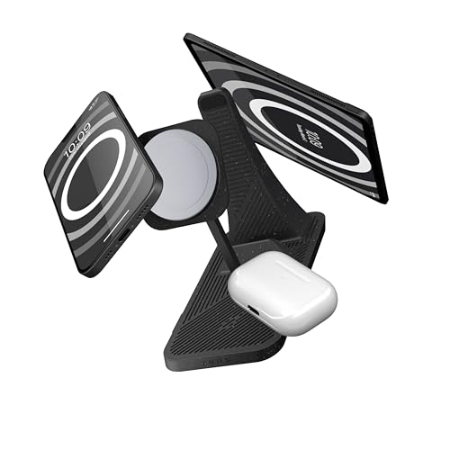 Zens 4-in-1 Modular Wireless Charging Station, MagSafe och Qi 15 W trådlös laddare för iPhone/Apple Watch/AirPods, iPad-stativ, inkluderar 65 W strömadapter (EU/UK/US) och 1,5m integrerad kabel, Svart