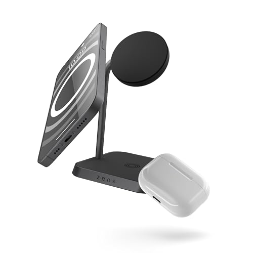 Zens 3-in-1 Modular Wireless Charging Station, MagSafe och Qi 15 W trådlös laddare för iPhone/AirPods, iPad Stand, inkluderar 65 W strömadapter (EU/UK/US) och 1,5 m integrerad kabel, Svart