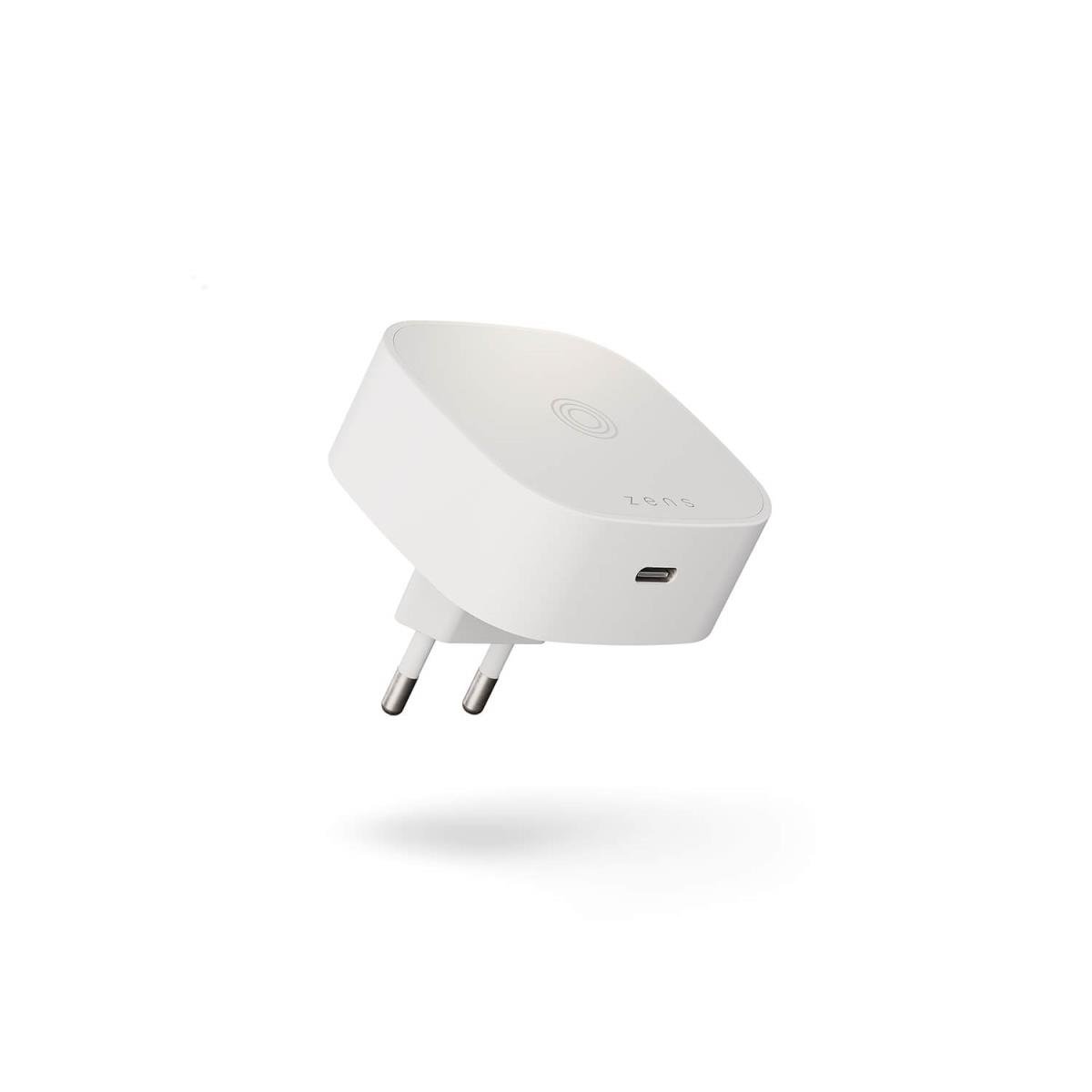 Zens Wireless Charging EU Power Adapter, MagSafe och Qi 15 W trådlös laddare för iPhone 16/15/14/13/12 och AirPods, inkluderar 18 W USB-C-port, Vit