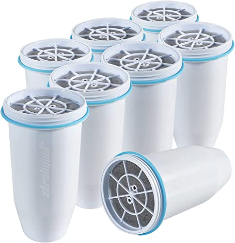 ZeroWater 5-stegs vattenfilter ersättning, vattenberedare dricksvatten – NSF-certifierad för att minska bly, andra tungmetaller och PFOA/PFOS – vattenfilterpatroner, 8-pack, vit