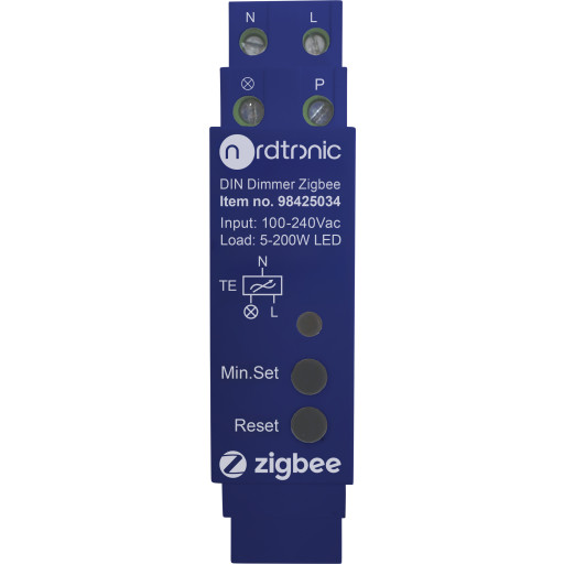 DIN Dimmer Zigbee 200W LED 230V tryckknapp