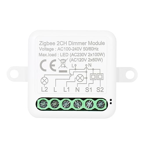 TFixol Zigbee Dimmer Switch Module App Fjärrkontroll Gardinbrytare Fungerar med Alexa Google Home 2 Gang Switch