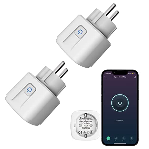 Zigbee Smart Outlet: Smart uttag med timer och nedräkningsfunktion, Tuya-app och röststyrning, energiövervakning, ZigBee Hub krävs, Smart Switch fungerar med Alexa (Zigbee, 2-pack)