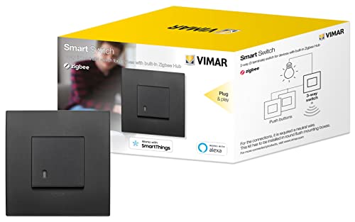 Vimar 0K19592.02 Arké nätverksbrytare kompatibel med Alexa, Kit Plug & Play för enheter i Zigbee Hub, neutral ledare krävs, svart