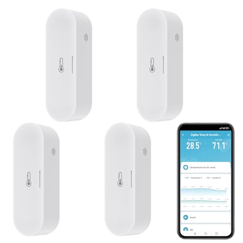 Intelligent termometer-hygrometer: USB/batteridriven Zigbee-inomhustermometer och fuktsensor, homekit-temperaturmonitor fungerar med Alexa, Zigbee-Hub krävs (4-pack)