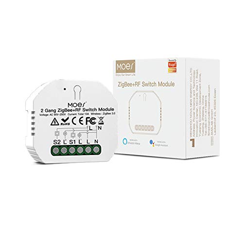 MOES ZigBee Mini Smart Alexa Dimmer strömbrytare 2 växlar relämodul, trådlös strömbrytare LED kompatibel med Smart Life Tuya Amazon Alexa Google Home【Fungerar endast med Tuya ZigBee Hub】