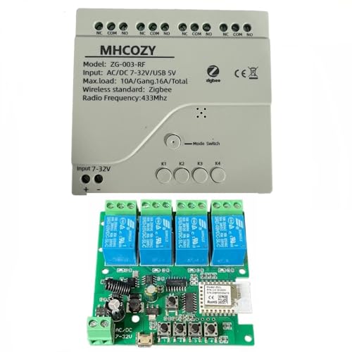 MHCOZY 4-kanals 12 V ZigBee-reläbrytare, självlåsande, långsam låsning, smart brytarmodul med timer, fungerar med Alexa Google Home Tuya Zigbee Hub