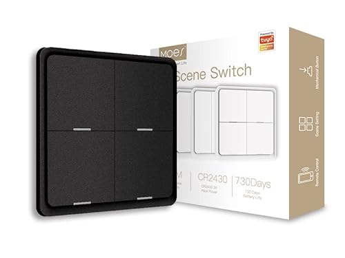 MOES Zigbee Smart strömbrytare, 12 Scene radioomkopplare utan installation (MOES ZigBee Hub krävs), intelligent fjärrkontroll, fjärrkontroll, Smart Life/Tuya App (inget batteri ingår)