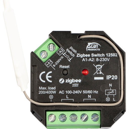 Strömbrytare, 1 kanal, Zigbee, Ingen neutral, 120mm