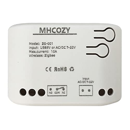 MHCOZY 12 V Smart Relay ZigBee 1-kanals strömbrytare, justerbart självflockningsläge och tillfälligt arbetsläge, fungerar med SmartThings, Alexa och Google Home (ZigBee-hubb krävs)