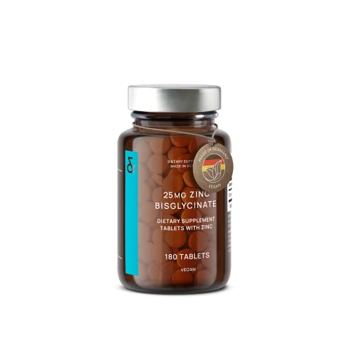 Zink 25mg Vegan - 180 elementär zink-tabletter i en burk (6 månaders leverans) - högdoserad zinc-bisglycinat mineraltillskott - stödjer immunförsvaret, hår, hud och naglar för kvinnor och män