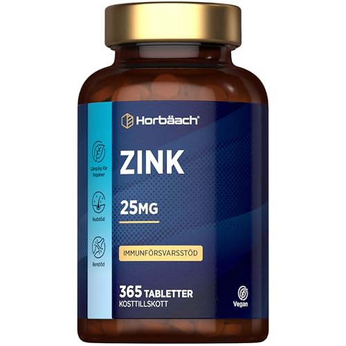 Zink Tabletter 25mg | 365 Veganska Tabletter per år | 25mg Zinc Gluconate | Hög dos | av Horbaach