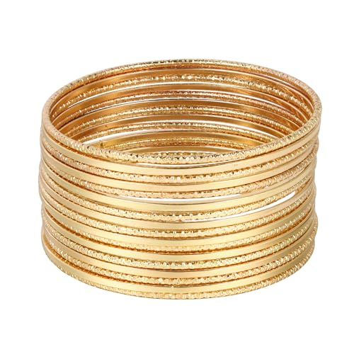 Eigso Mutli Layered Gold indiskt armband manschett armband för kvinnor män vintage stackable texturerade bohemiska armband för kvinnor man, Large, Zink, Ingen ädelsten