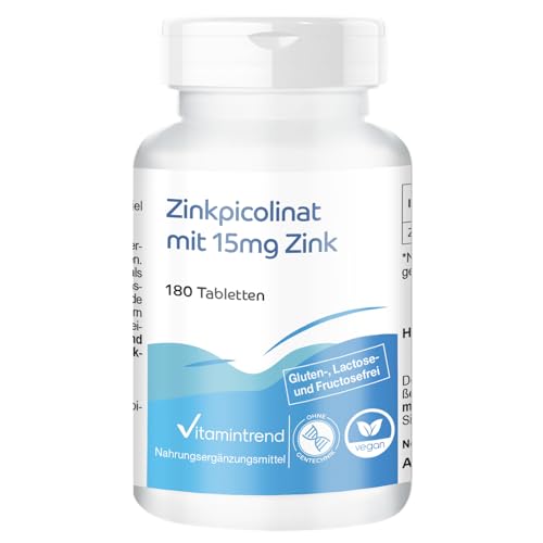 Zink 15mg från Zink Picolinate - 180 veganska tabletter - viktigt spårämne - ! I 6 MÅNADER! | Vitamintrend®