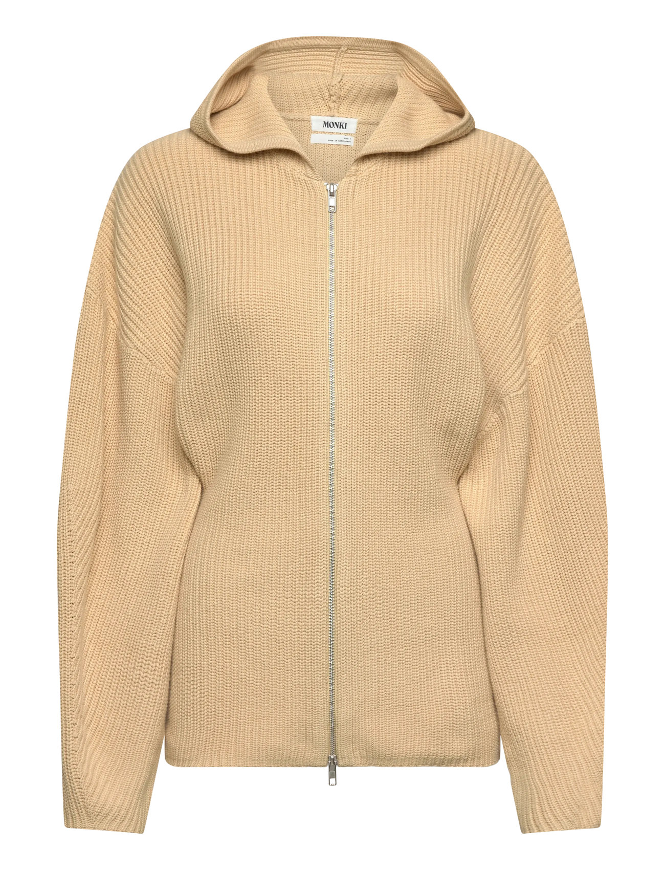 Monki Long Knitted Zip Hoodie - Beige - XXS