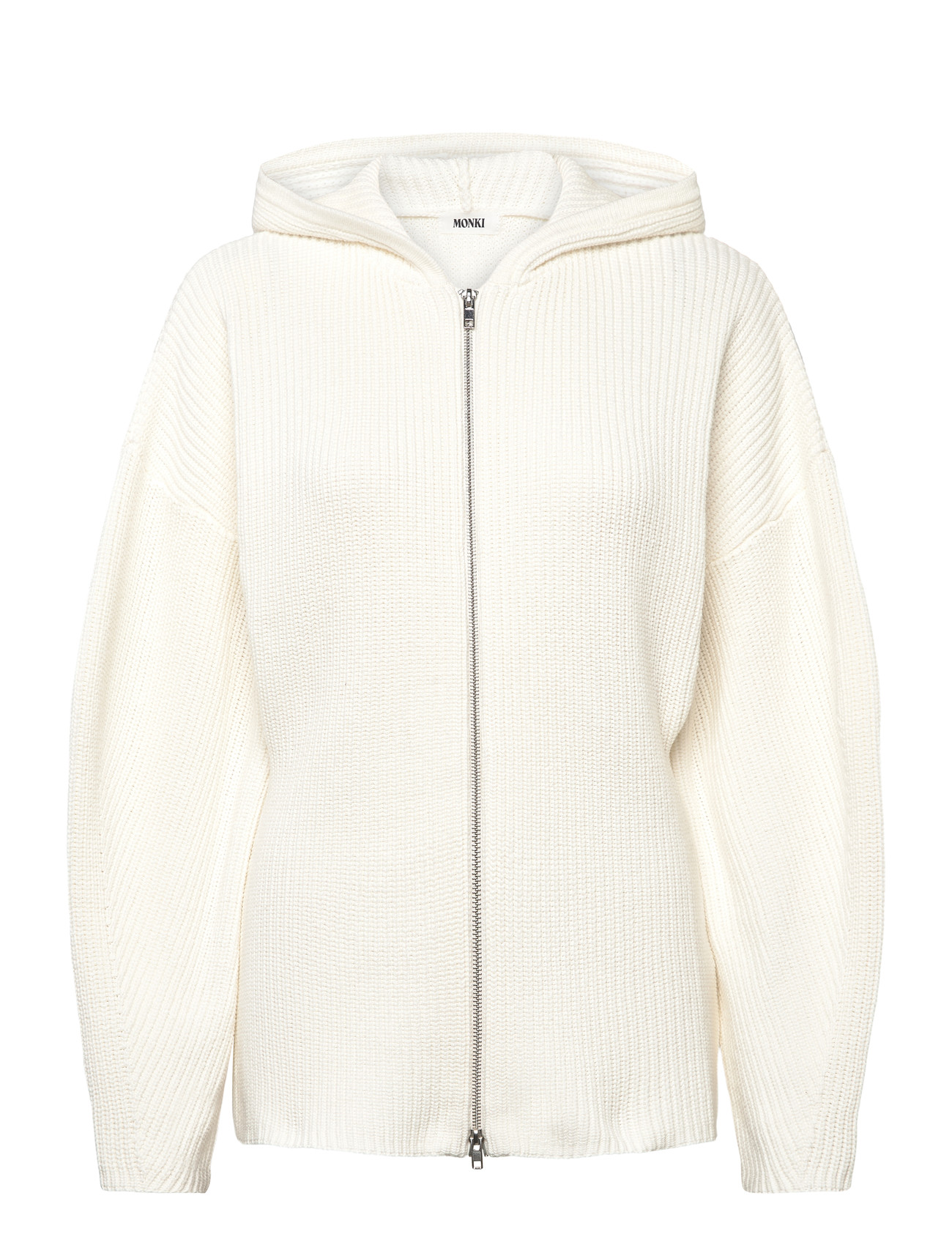 Monki Long Knitted Zip Hoodie - Cream - XL