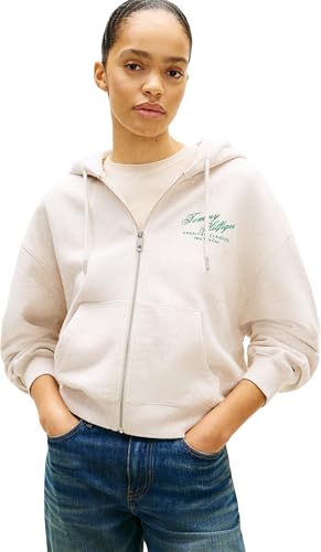 Tommy Hilfiger Dam Mdrn Script Zip Terry Hoodie WW0WW47845, BEIGE, XS