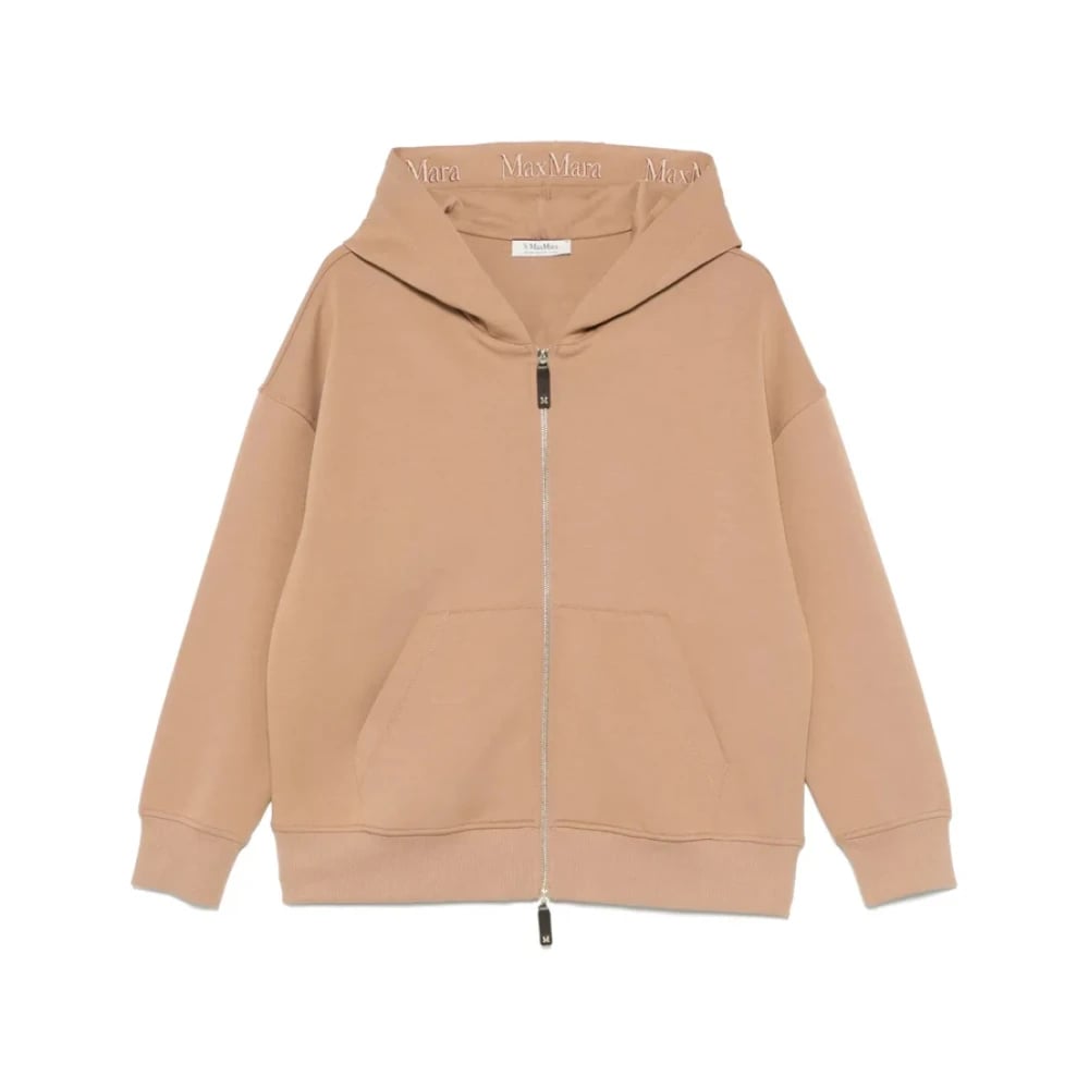 Max Mara, Sweatshirts & Hoodies , Dam, S, Beige Front Zip Hoodie med Fickor
