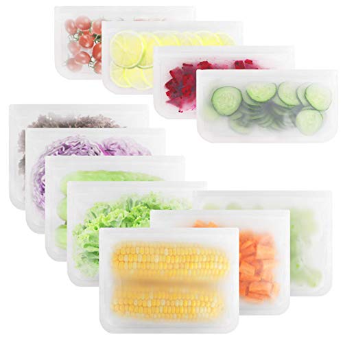 11 st återanvändbara matförvaringsväskor, fryspåsar, återanvändbara Ziplock-påsar (inkluderar borste)