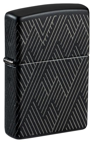 Zippo Stormtändare, matt svart (Black Matte), med 360°-lasergravyr av abstrakta linjer, påfyllningsbar och återanvändbar, med vindskyddad design, presentförpackning, tillverkad i USA