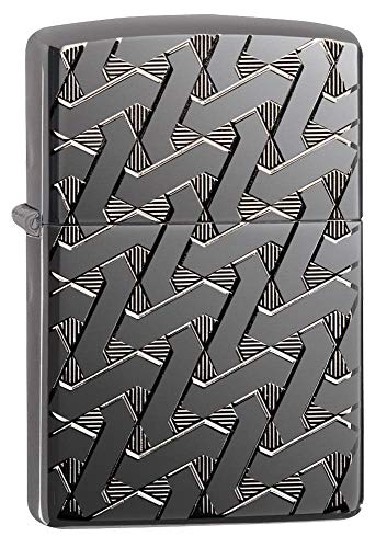 Zippo stormtändare - Geometric Weave, Black Ice-finish, djupgravyr, påfyllningsbar, återanvändbar, vindskyddad, presentförpackning, tillverkad i USA