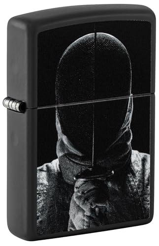 Zippo Stormtändare, matt svart (Black Matte), med färgbild av fäktning, påfyllningsbar och återanvändbar, med vindskyddad design, presentförpackning, tillverkad i USA