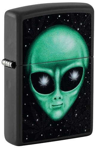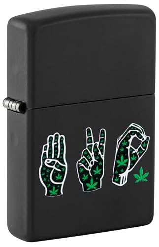 Zippo Stormtändare, matt svart (Black Matte), med färgbild med cannabismotiv, påfyllningsbar och återanvändbar, med vindskyddad design, presentförpackning, tillverkad i USA