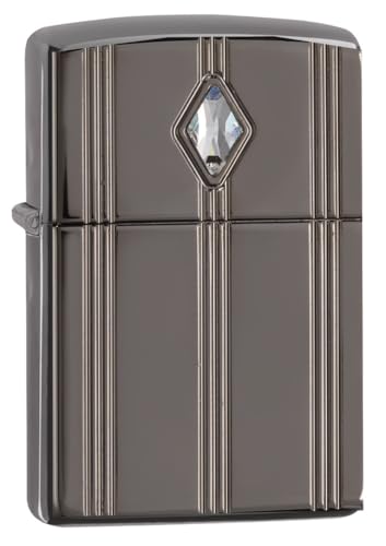 Zippo Stormtändare – Seamless Diamond, Black Ice, Deep Carve-Crystal Attached, påfyllningsbar, återanvändbar, vindskyddad, presentförpackning, tillverkad i USA