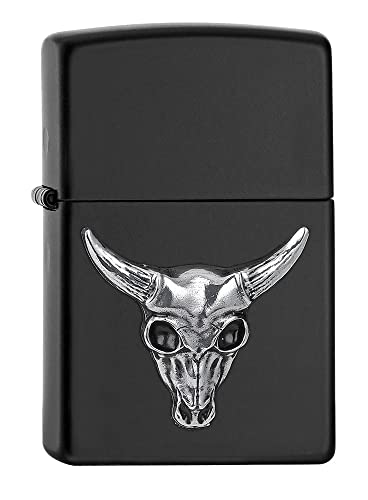Zippo-stormtändare – Bull Skull, Black Matte, Emblem – Påfyllbar – Återanvändbar – Vindsäker design – Presentask – Tillverkad i USA