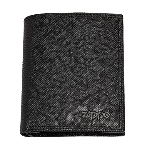 Zippo-plånbok – Saffianoläder – Svart – Portmonnä med RFID-skydd – Myntfack – Perfekt för kort och sedlar