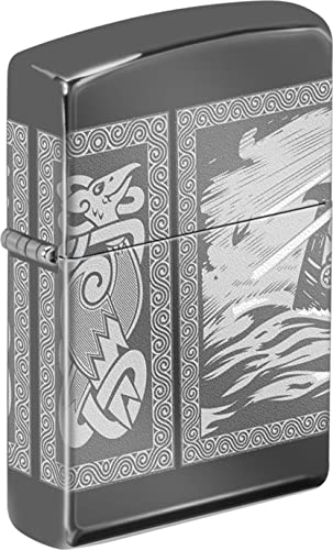 ZIPPO – Stormtändare, viking Drakkar, Laser Engraved, Black Ice, påfyllningsbar, i högkvalitativ presentförpackning