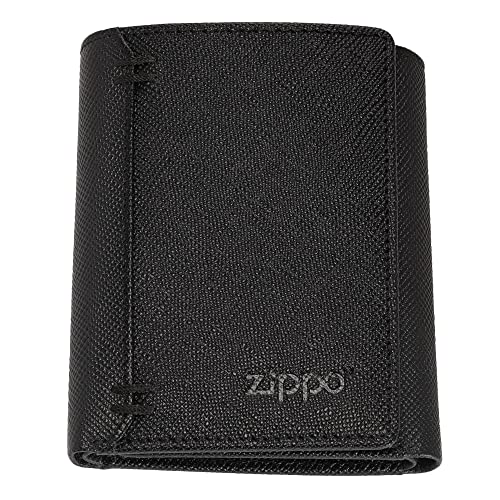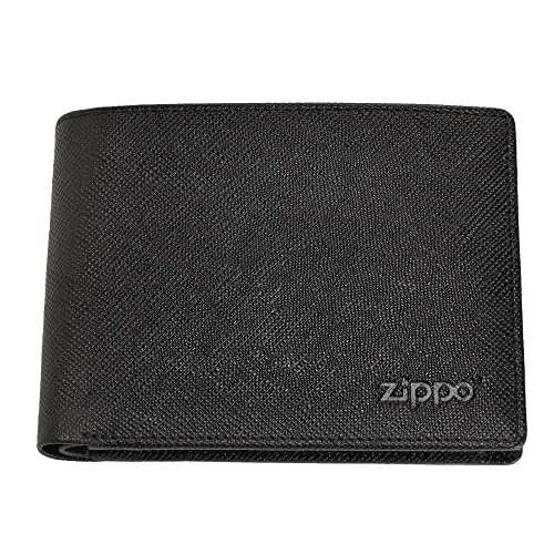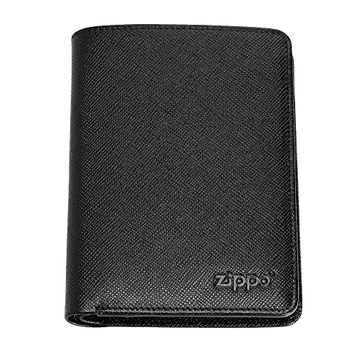 Zippo-plånbok – Saffiano-läder – Svart – Portmonnä för dam och herr– Portmonnä med RFID-skydd – Perfekt för kort och sedlar
