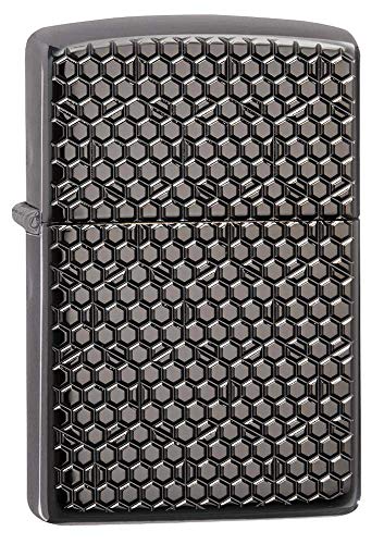 Zippo - Hexagon Design, Deep Carve - Black Ice - Bensin Vindtätare, påfyllningsbar, i högkvalitativ presentförpackning