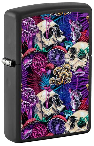 Zippo Stormtändare, matt svart (Black Matte), med neonbild med magisk svamp-motiv, påfyllningsbar och återanvändbar, med vindskyddad design, presentförpackning, tillverkad i USA