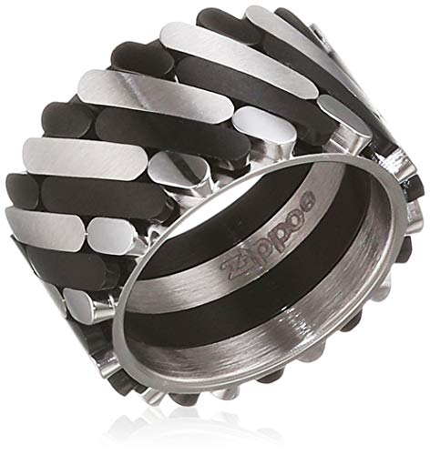 Zippo-ring – Silver, svart – Ring av rostfritt stål, med länkkedja – Storlek 66 – I presentask