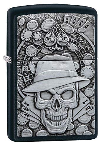 ZIPPO – Gambling Skull, Black Ice – Bensin Storm-tändare, påfyllningsbar, i högkvalitativ presentförpackning