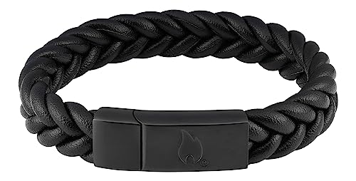 Zippo-armband – 20 cm – Flätat läderarmband för dam och herr– Spänne av rostfritt stål – Svart – Högglanspolerat – I presentask