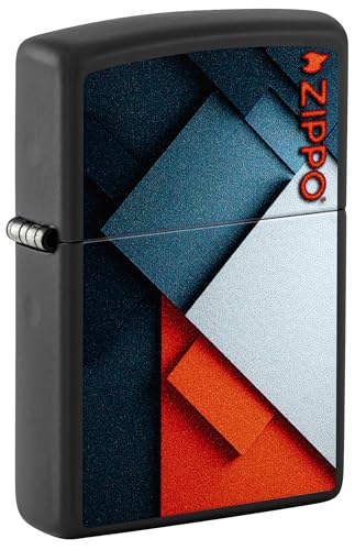 Zippo Stormtändare, matt svart (Black Matte), med färgglad modern Zippo-bild, påfyllningsbar och återanvändbar, med vindskyddad design, presentförpackning, tillverkad i USA
