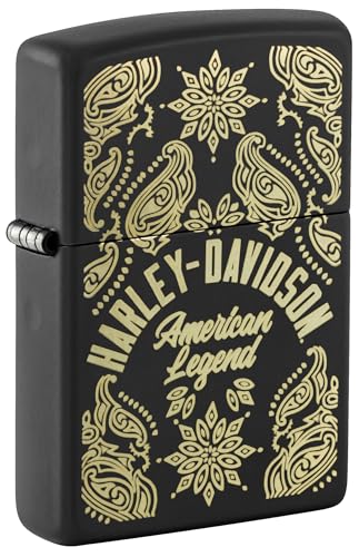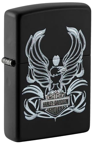 Zippo Stormtändare, matt svart (Black Matte), med lasergraverad Harley Davidson, påfyllningsbar och återanvändbar, med vindskyddad design, presentförpackning, tillverkad i USA