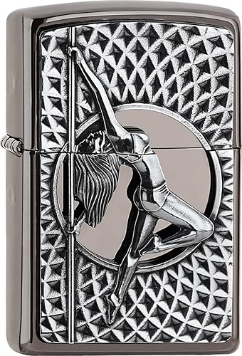 Zippo Stormtändare – Dance Girl, Black Ice, emblem, påfyllningsbar, återanvändbar, vindskyddad, presentförpackning, tillverkad i USA