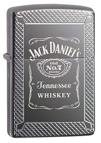 Zippo stormtändare - Jack Daniels, Black Ice-finish, djupgravyr, påfyllningsbar, återanvändbar, vindskyddad, presentförpackning, tillverkad i USA