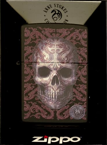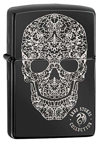 Zippo-stormtändare – Anne Stokes, High Polish Black, Laser Fancy Fill – Påfyllbar – Återanvändbar – Vindsäker design – Presentask – Tillverkad i USA