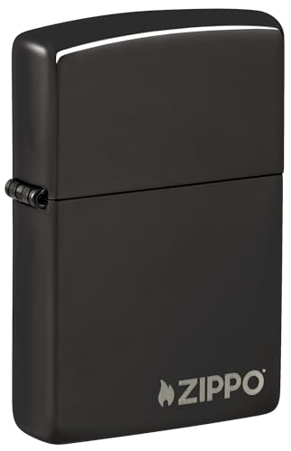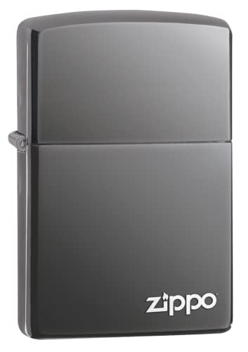 Zippo stormtändare - Högblank svart, lasergravyr med logotyp, basmodell, påfyllningsbar, återanvändbar, vindskyddad, presentförpackning, tillverkad i USA