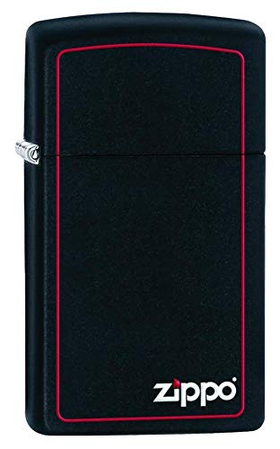 Zippo Stormtändare – Röd ram & logotyp på kant, slim svart matt, färgbild, påfyllningsbar, återanvändbar, vindskyddad, presentförpackning, tillverkad i USA