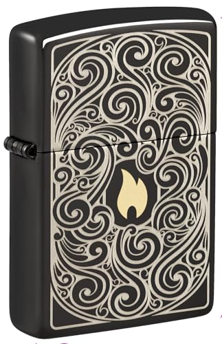 Zippo stormtändare - Modell Ace Filigree, Black Ice-finish med lasergravyr, påfyllningsbar, återanvändbar, vindskyddad, presentförpackning, tillverkad i USA