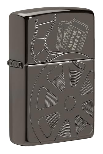 Zippo stormtändare – Celebrating Movies, Brushed Black Chrome, Deep Carve-Laser Engrave – påfyllningsbar – återanvändbar – vindbeständig design – presentförpackning – tillverkad i USA